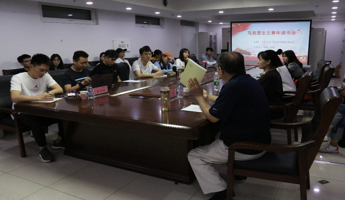 为了深入贯彻落实习近平总书记在党史学习教育动员大会上的重要讲话精神,教育和引导广大青年学党史,传承红色基因,汲取奋进力量。5月27日晚7点,马克思主义青年读书会在逸夫楼1217开展《关于若干历史问题的决议》研读活动,此次活动由球盟会苏杭教授主讲。