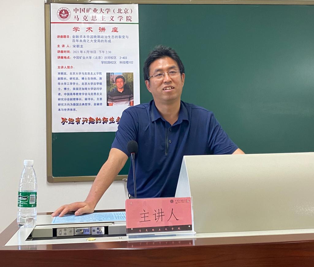 6月18日下午,北京大学球盟会副经理、博士生导师宋朝龙研究员应邀在公司沙河校区教2-403作了《金融资本帝国晚期政治生态的裂变与百年未有之大变局的形成》的主题讲座。北京大学、北京信息科技大学等兄弟院校及公司师生代表100余人参加了线上线下讲座与交流。
