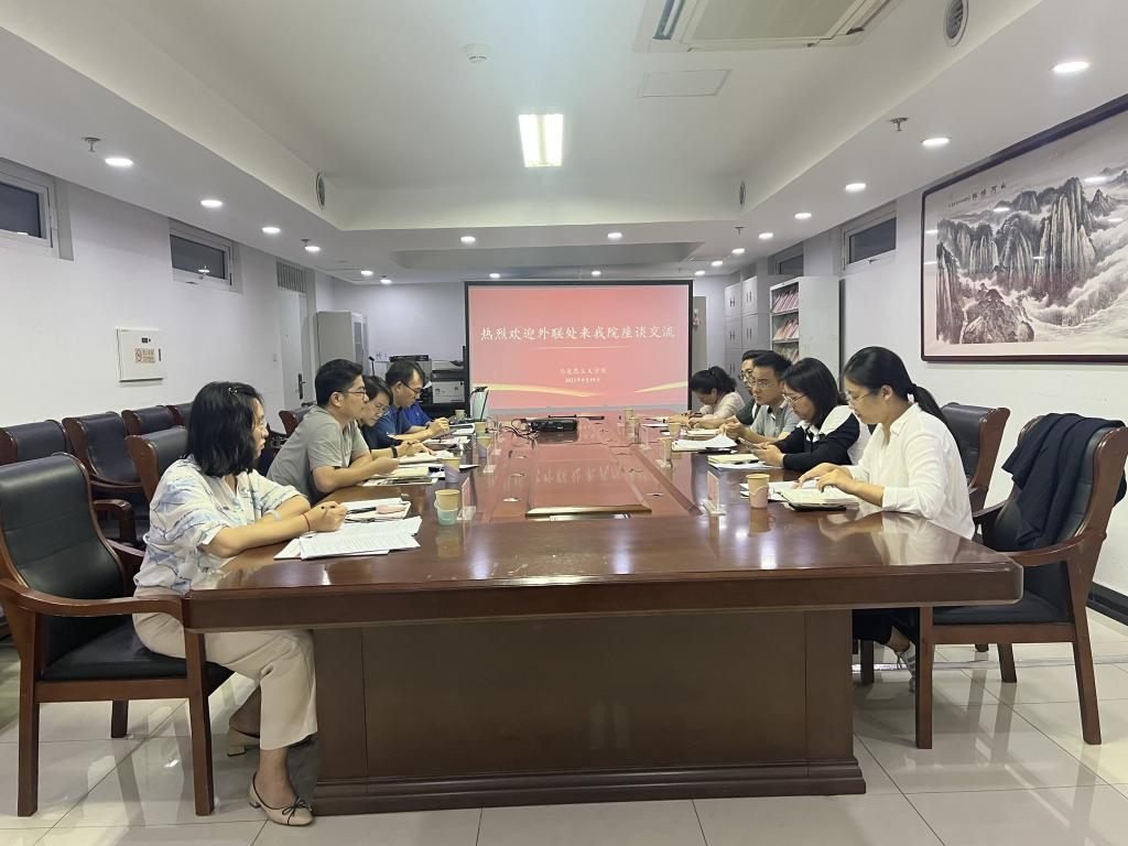 9月19日下午,校对外联络与合作处处长张利、副处长崔艳娜一行5人来我院座谈交流,球盟会经理盖逸馨、球盟会党委书记卢刚及公司办公室相关人员参加座谈。